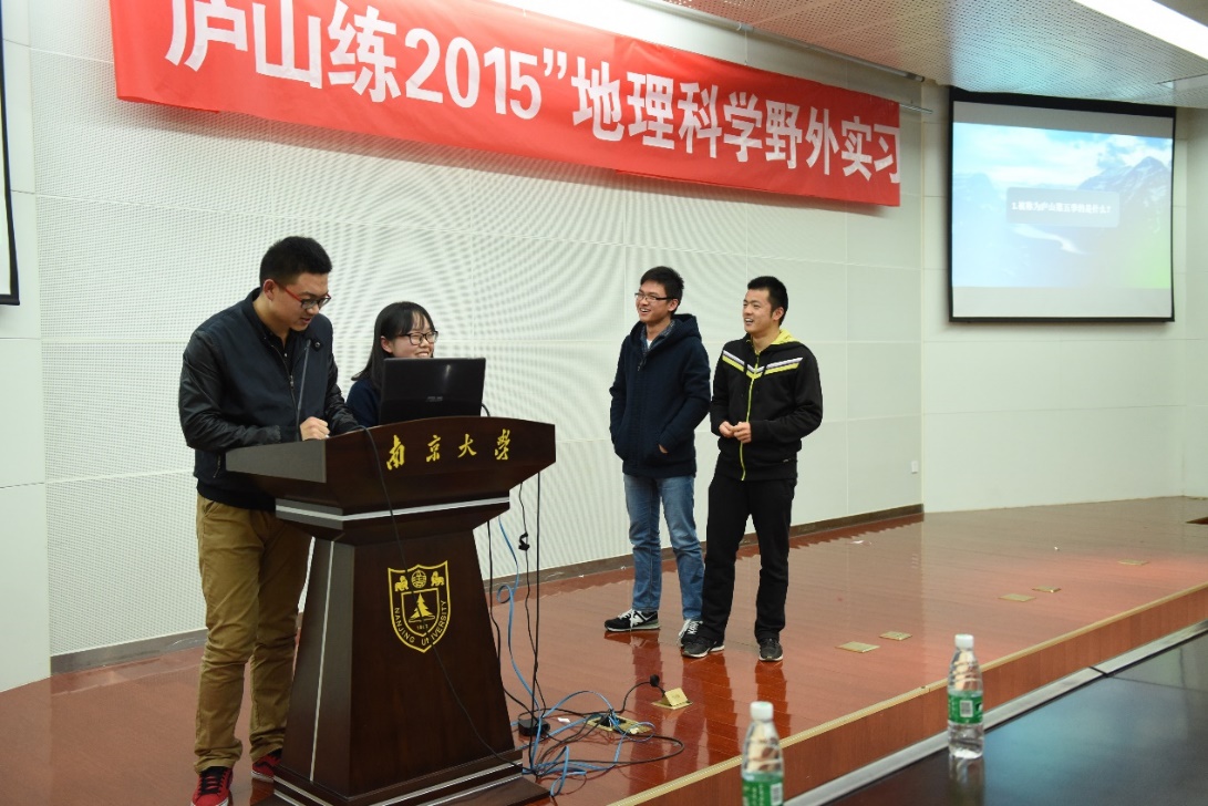提案活动开始之前,我们先回顾了轻松欢乐的庐山实习生活视频及照片。一张张的照片,无论同学们俏皮的笑脸、滑稽的动作,还是老师们绘声绘色的讲解、平易近人的笑容,都展示着庐山实习生活的充实和欢乐。穿插庐山知识问答环节及小游戏环节,整个过程中大家笑声不断,现场气氛热烈,掌声雷动。