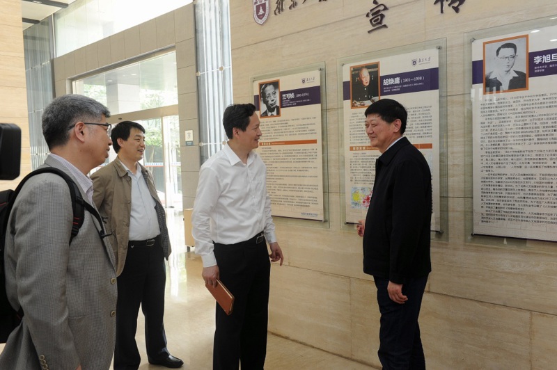 4月8日,江苏省政协副主席、南京大学党委书记胡金波到线上足球现金网 参观调研,与现金网 党政领导班子成员和教师代表座谈交流。校党委常委、副校长邹亚军陪同调研。线上足球现金网 院士王颖参加调研。