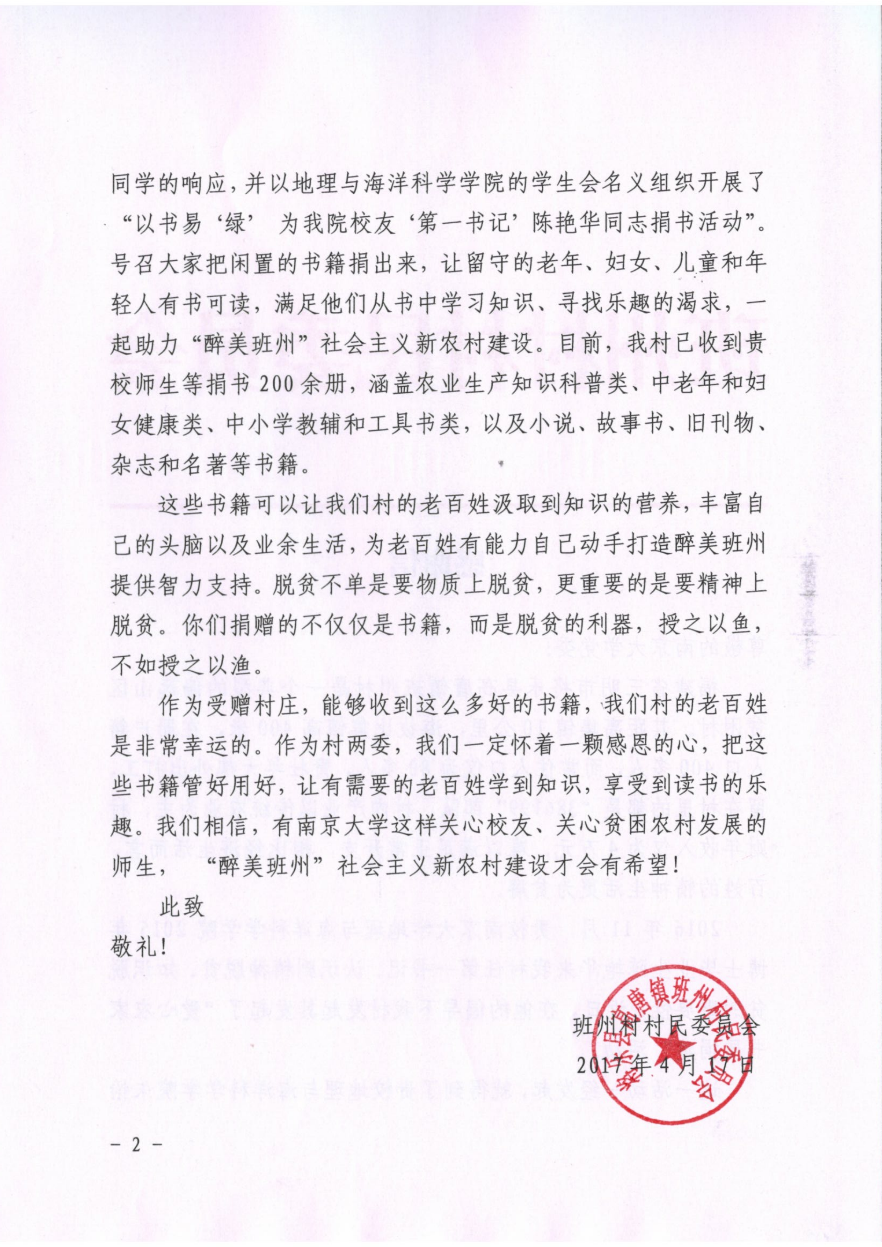 本次“以书易‘绿’”活动共募集到符合要求的图书200多册,书籍种类涉及儿童文学、名著小说、农业养殖、卫生健康、流行时尚等类型。目前,所有书籍均已全部寄送到福建省三明市将乐县高唐镇班州村(贫困村)村委会,程艳华书记代表班州村委向我校党委寄来了感谢信,信中说到,班州村会将这些书籍管好用好,让有需要的老百姓学到知识,享受读书的乐趣。