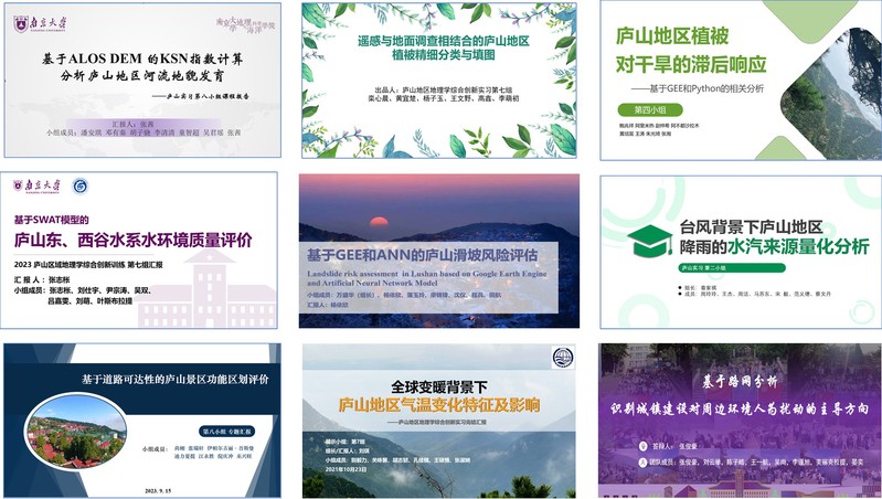 七十年积淀结出丰硕成果。“庐山模式”以综合创新地理学人才培养为目标,获江苏省教学成果二等奖、南京大学“十三五”本科实验教学优秀团队等荣誉。以本课程为主要内容的教学成果 “虚实结合的数字化地理人才培养模式创建与实践”荣获国家级教学成果二等奖。