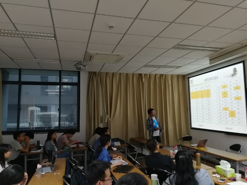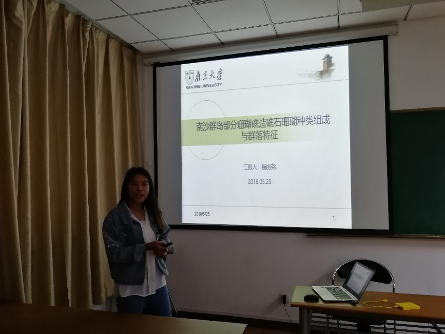 国际视野的重要性。张永战副教授报告了“南海岛礁调查与南沙北部礁岛地貌”,展示了南沙海域岛礁分布、控制现状及三次南沙考察调研所做工作,分析了南沙北部礁岛地貌特点及影响因素。刘绍文副教授报告了“南海北部大陆边缘热流分布特征及其构造意义”,结合已有海洋热流数据阐述南海北部陆缘热状态,探讨了南海陆缘热流格局及机制问题。博士生李亚丽报告了“基于西沙永乐环礁表层沉积物粒径分析的年代标尺及其对珊瑚岛屿沉积物供应的启示”,通过分析西沙永乐环礁表层珊瑚碎屑组分粒径和年代的关系,构建粒径-年代关系模型,讨论了模型的应用前景及对珊瑚礁岛屿沉积物供应的启示。博士生郝喆报告了“海岛居民健康长寿的调查研究及拓展—以海南岛为例”,从海南百岁老人的空间分布、生活习性、环境-人体化学元素的关联三方面探究海南省健康长寿现象、解析海南省百岁老人体内化学元素的含量特征及影响因素。硕士生王飞报告了“南海郑和、道明群礁海域跃层微细结构及其意义”,通过分析南海郑和、道明群礁海域13个站点的温度、盐度、声速等数据,讨论了珊瑚环礁海域跃层微细结构中水深、温度与盐度、密度的变化关系。