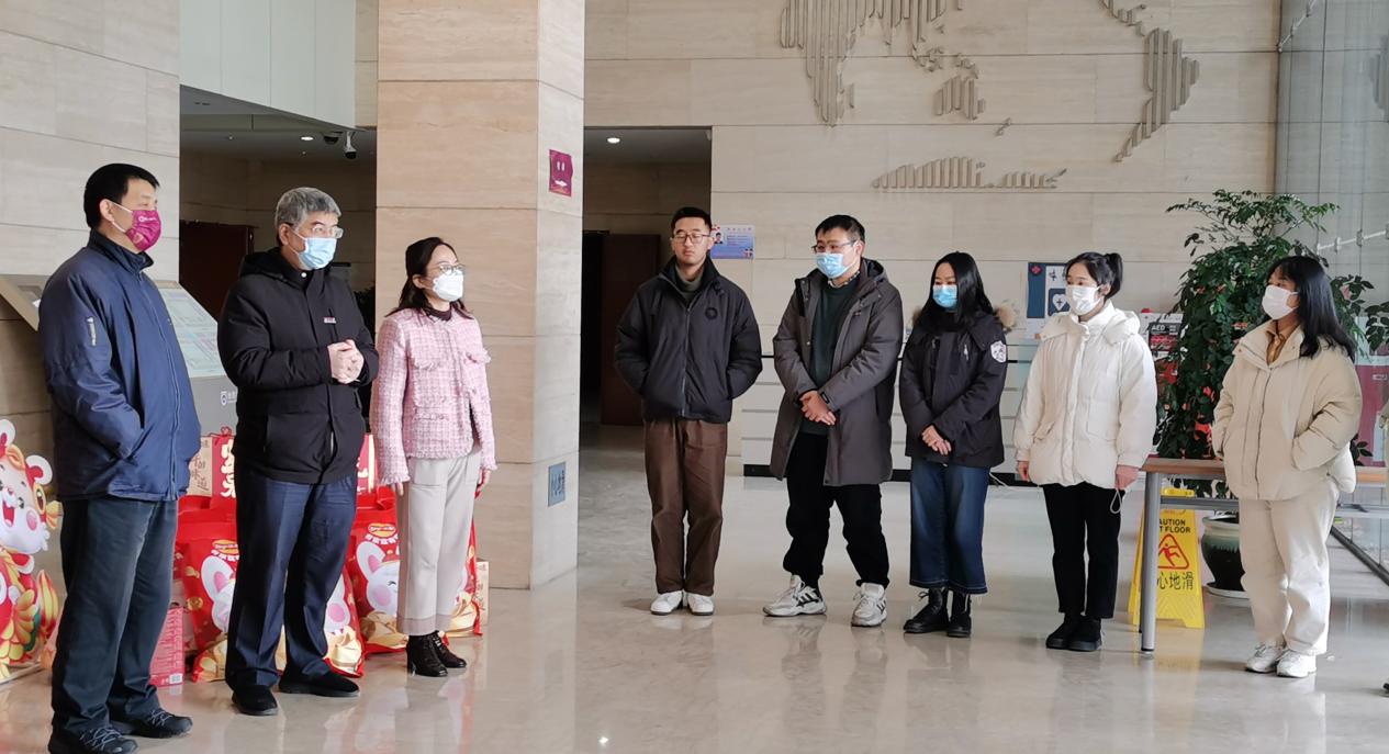 时至年关岁末,为加强对留校学生的关怀和帮助,2023116午,线上足球现金网 在仙林校区昆山楼举行“源满辞旧岁,齐聚暖新春”2023春节留校学生慰问活动。现金网 党委书记李满春,院长鹿化煜,副院长王先彦、金晓斌,党委副书记陈卉,海洋科学系主任高建华,研究生辅导员牛战胜、张馨予齐聚昆山楼大厅,向同学们送去新春祝福和节日问候。