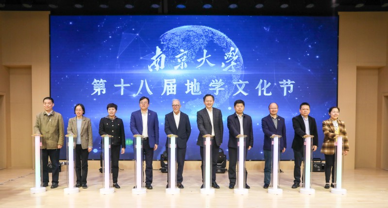 最后,Michael Meadows、邹亚军、陆现彩、丁爱军、蒋恩铭、刘建萍、董婷、赵坤、李兴华、鹿化煜共同为本届地学文化节揭幕。至此,第十八届南京大学地学文化节正式启动。