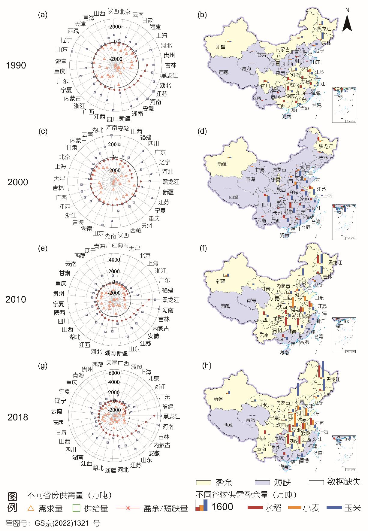 图1 1990-2018年全国不同省级行政区谷物供需平衡状况