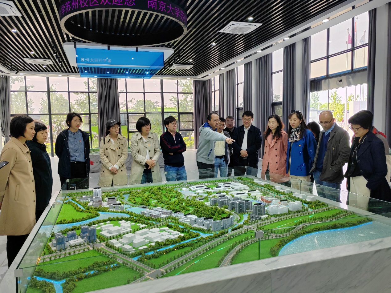 金陵姑苏春意浓,支部共建情谊深。南京大学苏州校区是本次主题党日活动的第二站。为了加强“双一流”建设,实现建设“第一个南大”的目标,南京大学拓展办学空间,建设苏州校区,建设苏州校区也是贯彻习近平总书记关于“第一个南大”建设指示的切实行动,实现了名城与名校的强强联手、双向赋能。支部党员们来到南京大学苏州校区,实地调研了苏州校区建设情况。南京大学苏州校区综合事务办公室副主任李思佳同志结合沙盘、展板和实物现场,为大家详细介绍了苏州校区的建设现状及未来发展规划,带领支部党员同志走进苏州校区,并就老师和同学们所关心的教学、生活及办公条件开展实地参观调研。
