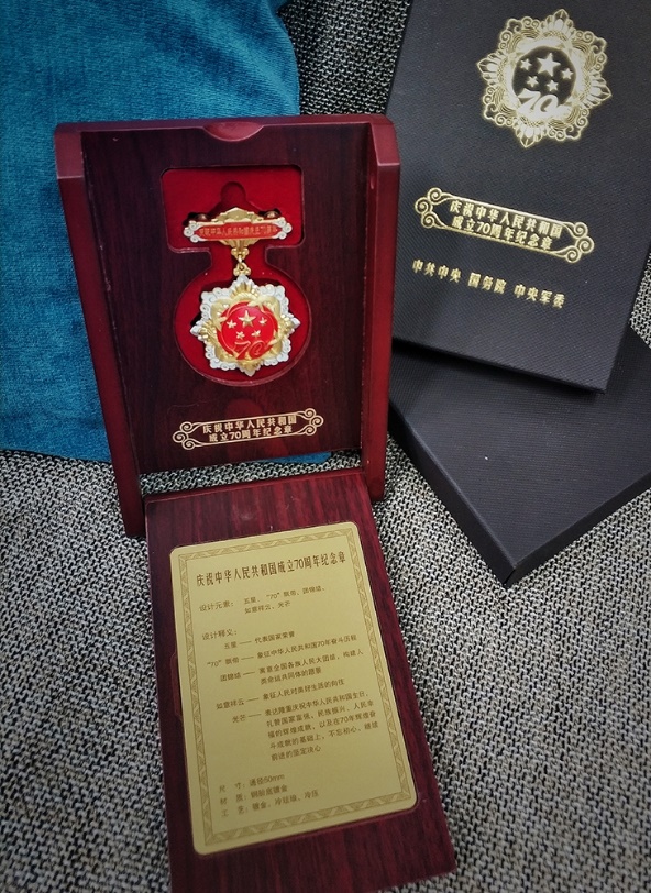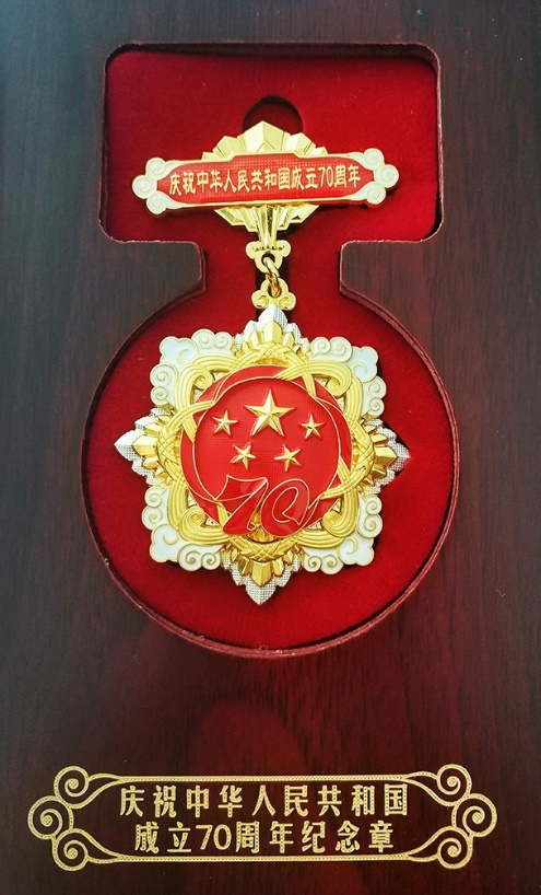国庆前夕,线上足球现金网 李满春教授收到由中共中央、国务院、中央军委颁发的“庆祝中华人民共和国成立70周年”纪念章。纪念章颁发是新中国成立70周年系列庆祝活动的重要组成部分。纪念章代表国家荣誉,象征中华人民共和国70年奋斗历程和人民对美好生活的向往,寓意全国各族人民大团结、构建人类命运共同体的愿景,表达隆重庆祝中华人民共和国生日,礼赞国家富强、民族振兴、人民幸福的辉煌成就,以及在70年辉煌奋斗成就的基础上不忘初心、继续前进的坚定决心。