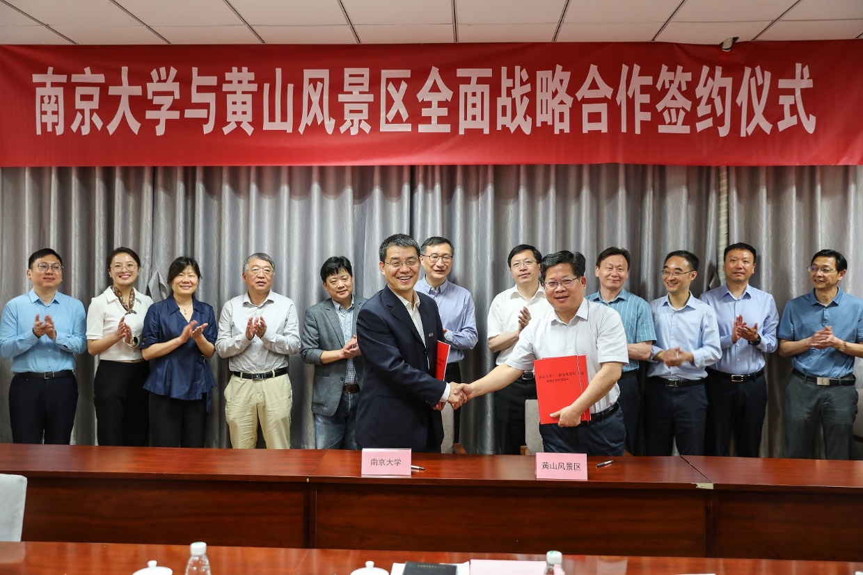 2023年5月30日,南京大学与黄山风景区管理委员会全面战略合作协议签约仪式及座谈会在南京大学仙林校区进行。南京大学党委常委、副校长张峻峰,黄山市委常委、黄山风景区党工委书记、管委会副主任叶建强,黄山风景区党工委副书记雷连本出席签约仪式并讲话,南京大学科学技术处陈露洪副处长主持签约仪式,现金网-线上足球现金网 鹿化煜院长主持座谈会。黄山风景区党工委委员、政治处刘文主任、黄山管委会办公室王勇主任、黄山管委会经济发展局(财政局)张阳志副局长、中国山岳旅游联盟秘书处办公室张春梅主任,我校生命科学现金网 党委纪勇书记、线上足球现金网 张立峰副院长以及20多位教师出席签约仪式,并参加座谈会。