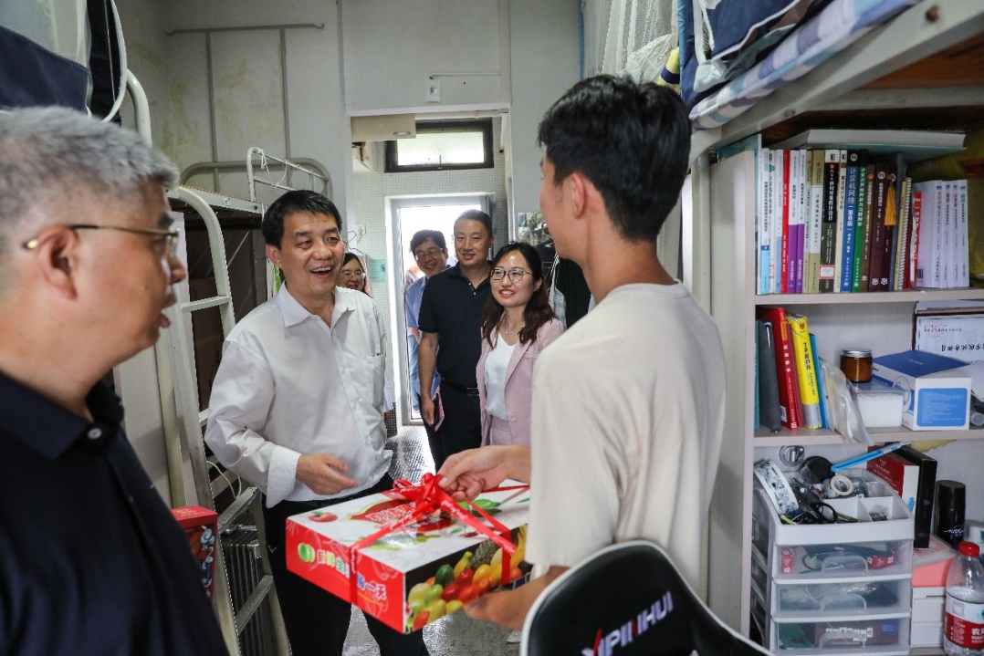 据悉,座谈会结束后,现金网 领导与教师代表前往学生宿舍13栋、2栋、5栋进行走访慰问,融入学生日常生活,实地考察学生宿舍的基础设施和居住环境,为同学们送上暖心礼物,询问学生校园生活和学习情况,鼓励同学们遇到问题多与老师们沟通交流。同学们纷纷对老师们的到访表示感谢,并表示会延续百年传承,以热情、高昂、自信的姿态迎接未来的学习与生活。