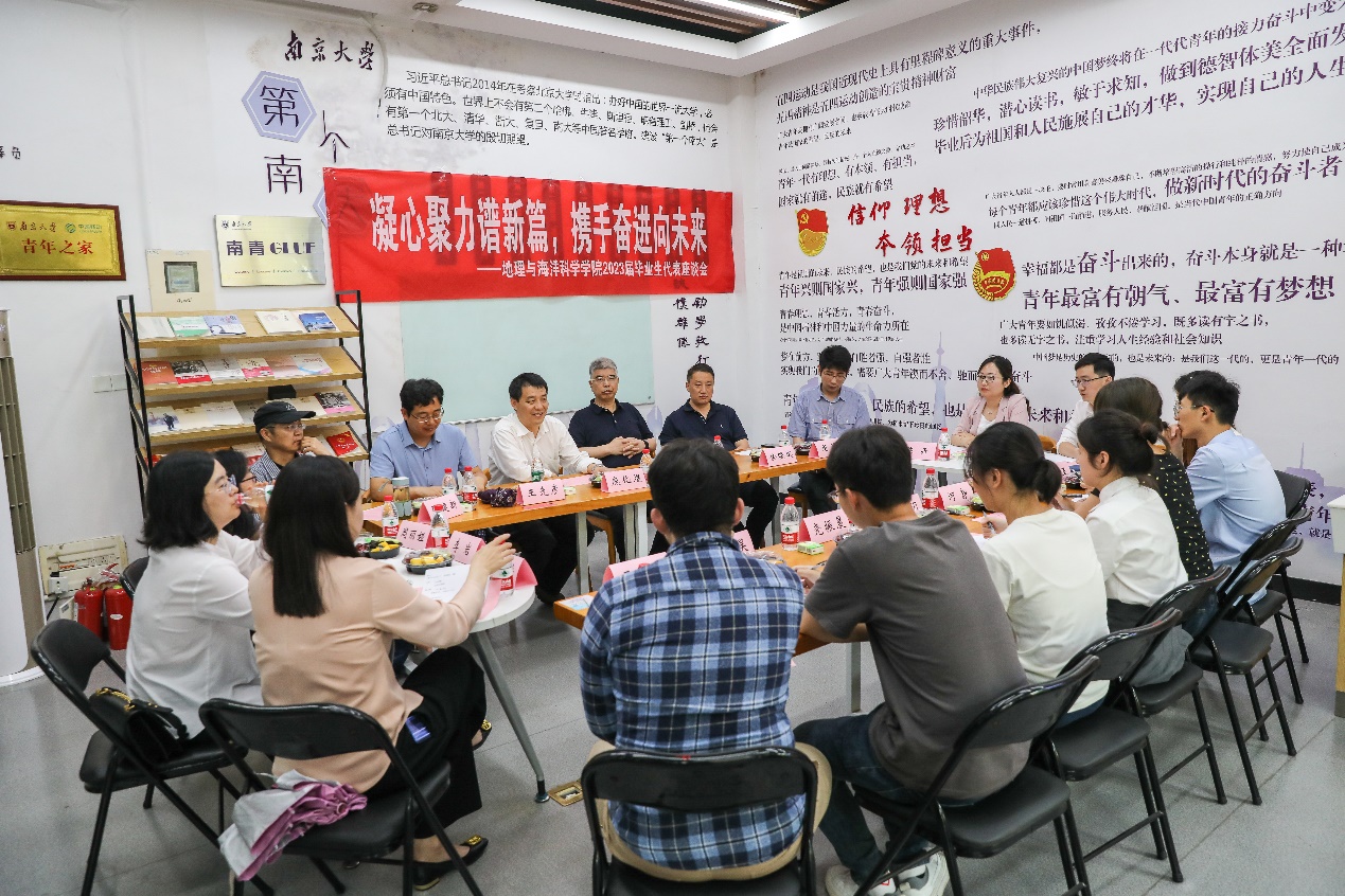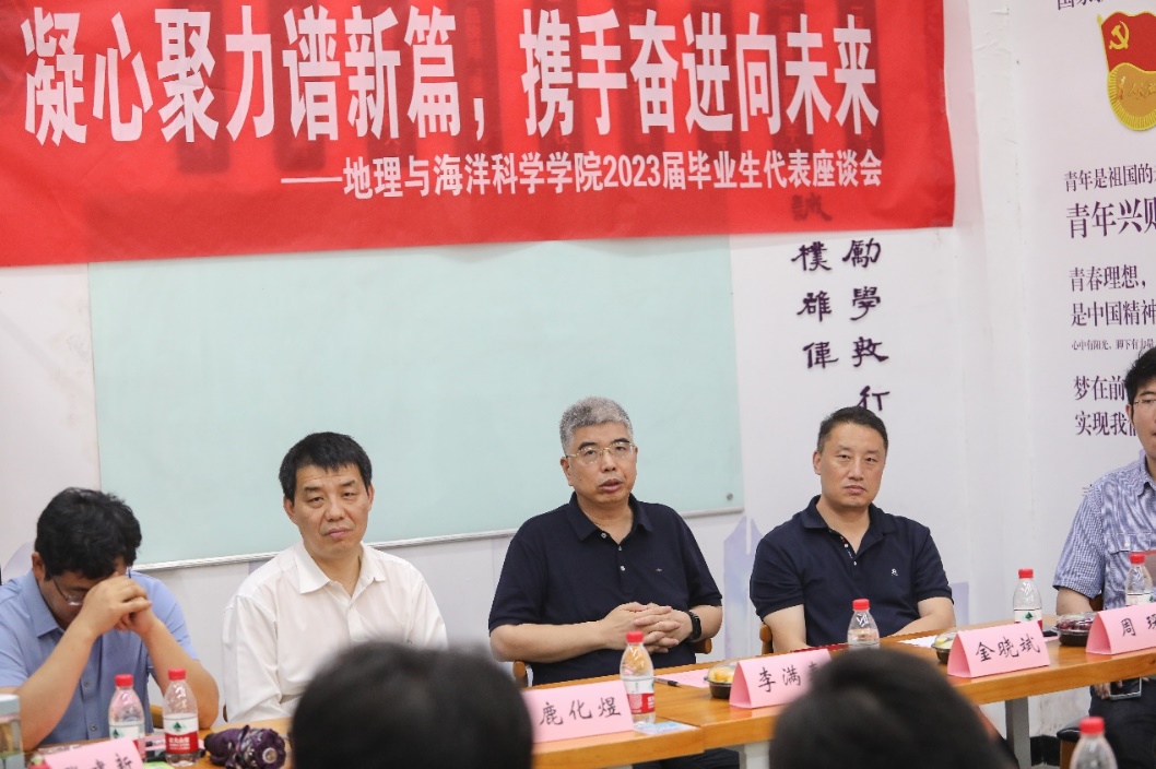 活动伊始,毕业生代表依次做了交流发言。博士毕业生代表徐伟义首先表示,毕业既是终点也是新的起点,正是现金网 的精心培养,才让我们有了奔赴下一站的信心和底气。硕士毕业生代表王佩玉、栾文博、何静,也就求学期间的收获与成长、历练与提升发表感言,并表示将以南大地理人的“底气、锐气、勇气”在未来的学习和工作中保持“奋进”。本科毕业生代表俞玥、尧振晨、陈崇昊、王泽霖表示四年大学时光丰富多彩,线上足球现金网 给予了同学们全面发展的宝贵机遇,同时也表达了对现金网 和老师们的感谢及对未来的美好期许。同学们一致表示,在南大线上足球现金网 的求学过程中,收获了丰富的知识和成长,切实感受到了线上足球现金网 的重视和关爱。在轻松愉快的氛围中,同学们对研究生学业预警机制、国际科考、野外实习、现金网 公共空间建设、专场招聘会等方面提出了期望与建议。