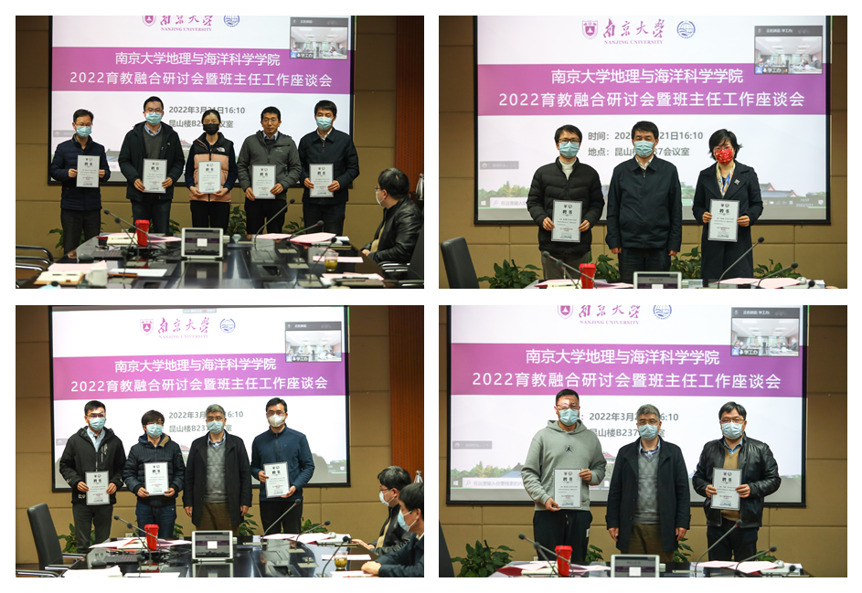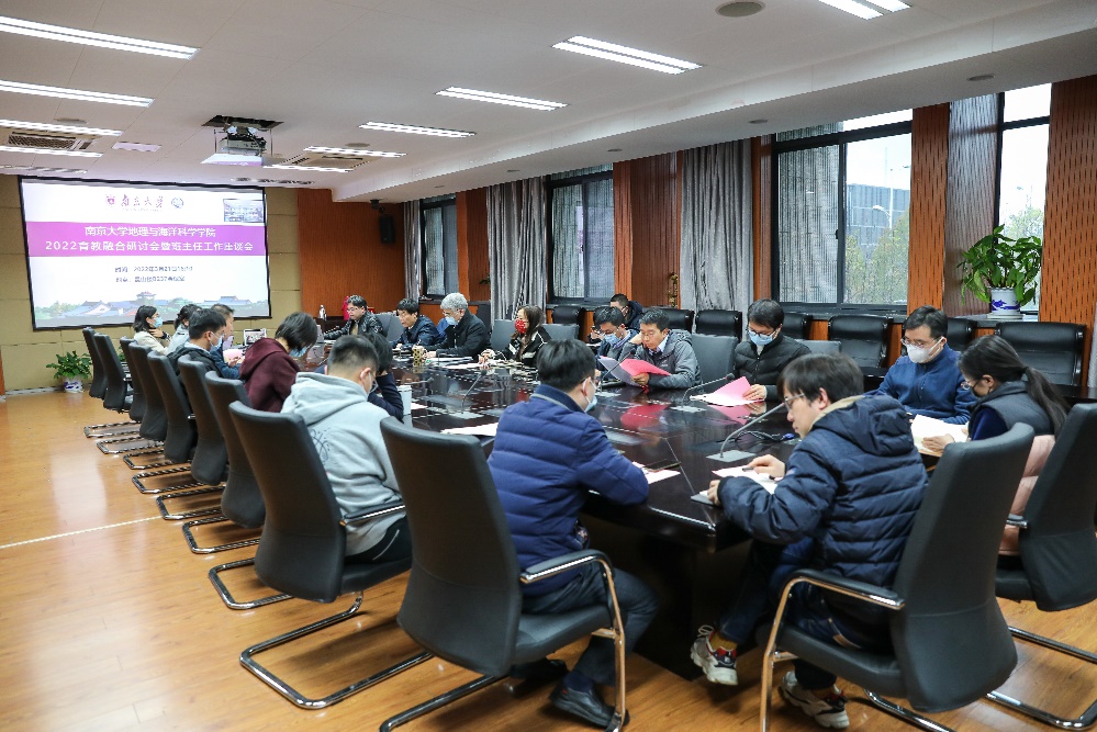 为进一步推动南京大学“熔炉工程”和“三元四维”人才培养体系落实落地,充分发挥班主任的重要作用,线上足球现金网 于3月21日下午,在昆山楼237召开了2022育教融合研讨会暨班主任工作座谈会。院长鹿化煜、党委书记李满春、副院长金晓斌、党委副书记陈卉、各系教学系主任、本科生班主任、教务员王玮、辅导员李岩通过线上线下联合的方式参加了此次会议,会议由金晓斌副院长主持。