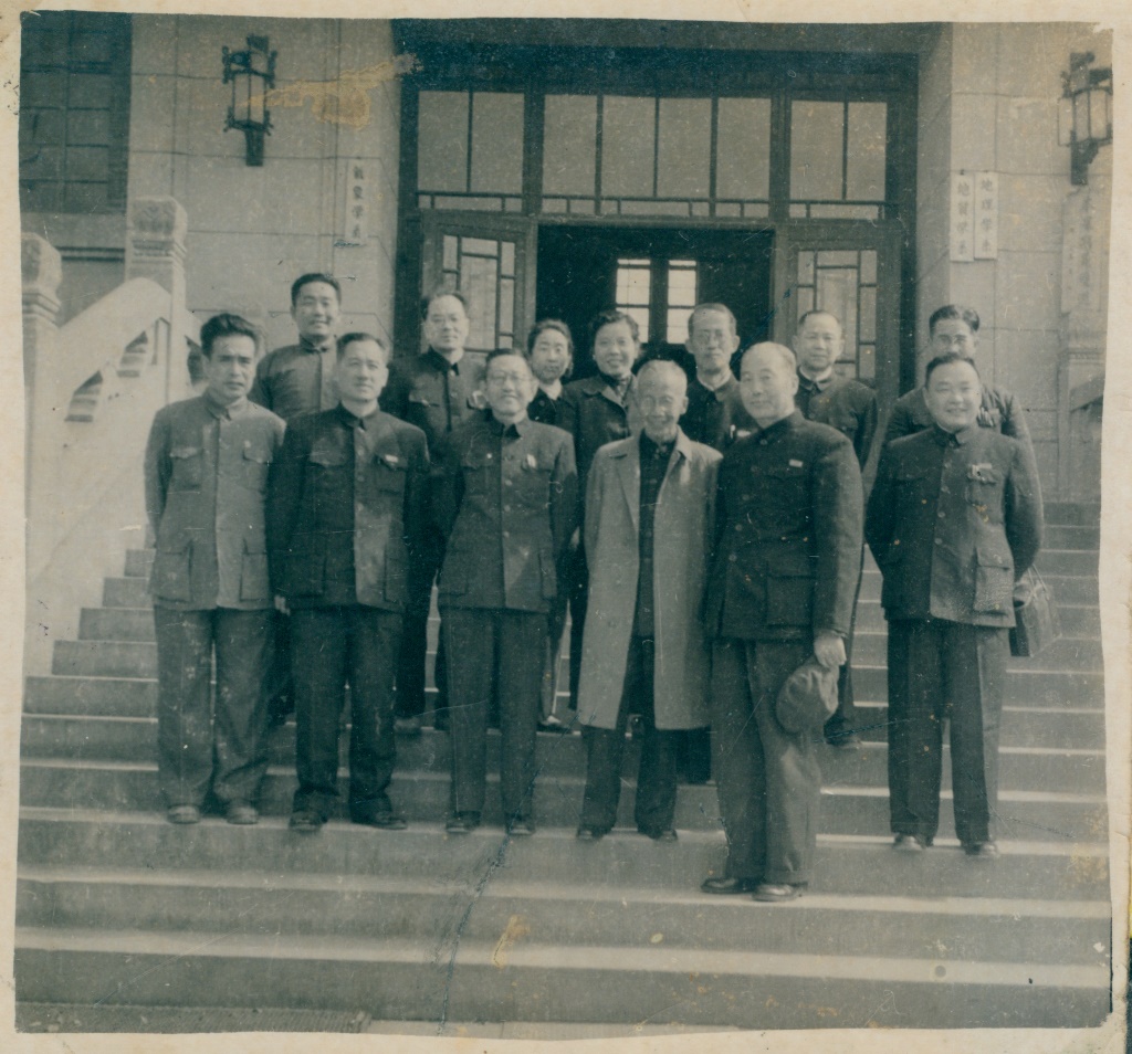 竺可桢先生在东南大楼前与地理学系、气象学系部分教授合影留念(1957)