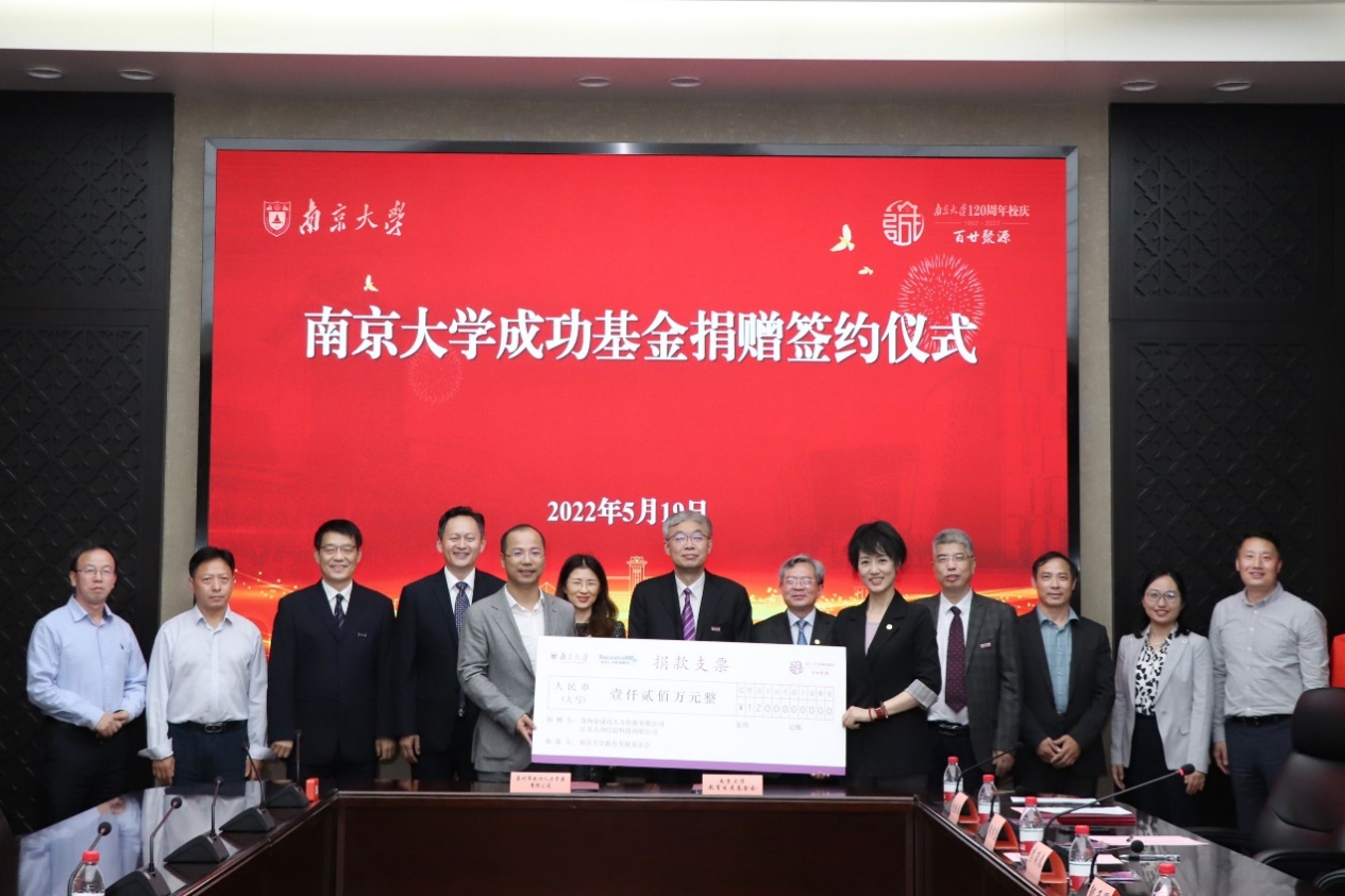 5月18日,南京大学成功基金捐赠签约仪式在仙林校区举行。线上足球现金网 1997级校友,苏州市成功人力资源有限公司董事长林伟星、董事李洁,线上足球现金网 院士、南京大学校长吕建参加了仪式。仪式由现金网-线上足球现金网 党委书记李满春主持。