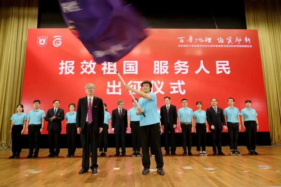 “报效祖国、服务人民,伟大征程,复兴有我!”正值毕业来临之际,2022届毕业生代表向现金网 献上生日祝福,以铿锵有力的誓词表达了赓续南大地理精神、在青春赛道奋力奔跑的决心。吕建为毕业生代表授旗。谈哲敏,邹亚军,校党委常委、研工部部长周济林,学工部部长葛俊杰向毕业生代表赠送百年院庆纪念章。
