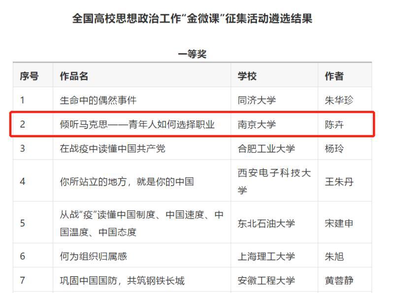 日前,线上足球现金网 党委副书记陈卉副教授的微课作品《倾听马克思——青年人如何选择职业》荣获2020年度全国高校思想政治工作“金微课”一等奖。该作品紧扣青年职业价值观引导这一时代主题,结合青年的思维特点和认知规律,以“真”为基点,以“美”为载体,以“情”为纽带,展开教学。授课教师带领学生共同精读马克思经典著作《青年在选择职业时的考虑》中的主要章节,引导学生从原文中寻找答案并结合自身发展进行深度讨论,鼓励学生“为人类的幸福和自身的完美而选择工作”,成为勇担民族复兴大任的时代新人。