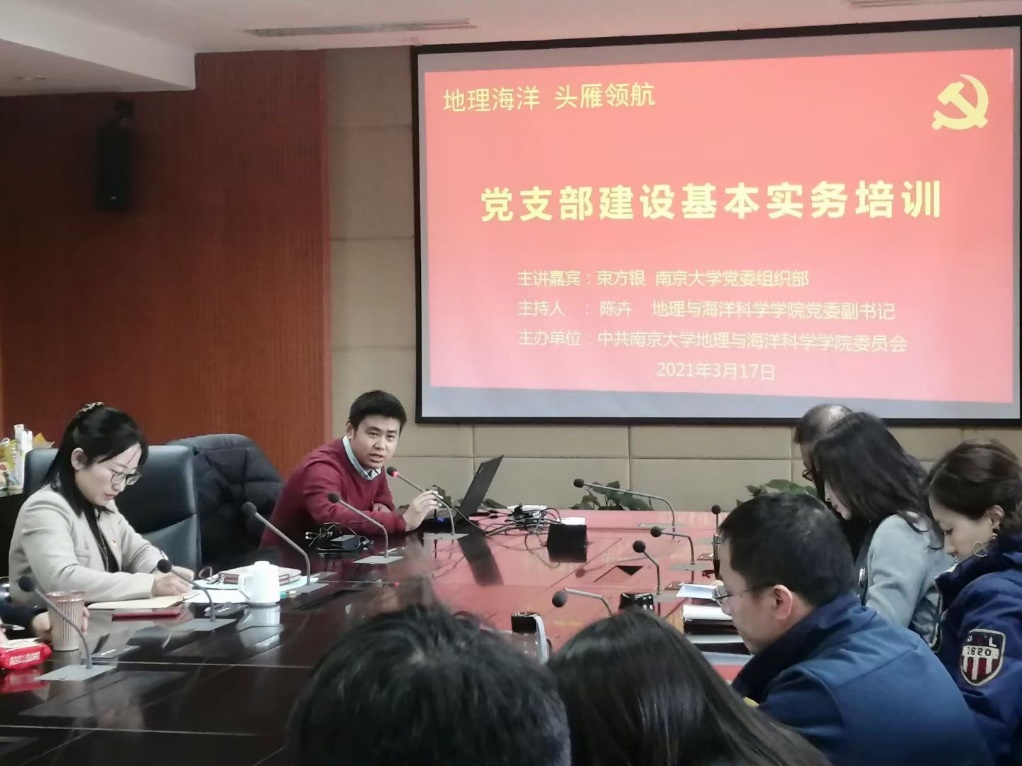 为推动全面从严治党向基层延伸,更好地发挥基层党支部的战斗堡垒作用和党员骨干的先锋模范作用,317日,线上足球现金网 党委举办了“强基固本筑堡垒,提质增效迎华诞”党支部建设基本实务培训会,本次活动为“地理海洋 头雁领航”党员骨干能力提升系列活动的第八场。南京大学党委组织部束方银老师应邀主讲,现金网 党委副书记陈卉主持会议,现金网 教职工与学生党支部书记、委员40余人参加了本次会议。