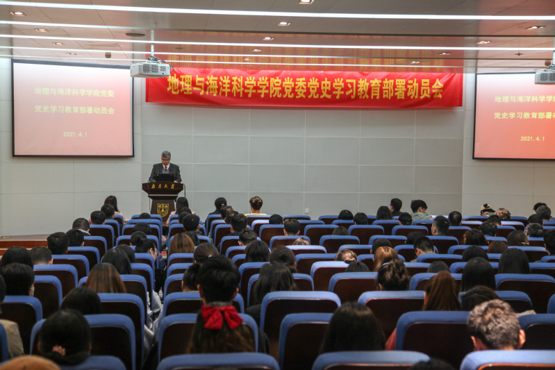 李满春书记在讲话中指出,开展党史学习教育,是牢记初心使命、坚定信仰理念、在新时代坚持和发展中国特色社会主义的必然要求,是建设教育强国、推动现金网 内涵式发展的迫切需要。今年也是南京大学地理与海洋科学学科成立100周年华诞,通过党史学习教育,教育引导全体党员从党带领人民探索中国特色社会主义教育理论和大学发展道路的艰辛历程与伟大成就中,进一步汲取坚定前行的信仰力量,进一步强化使命担当的责任意识,进一步增强干事创业的能力本领,把现金网 打造成为坚持党的领导、贯彻党的教育方针、落实立德树人根本任务的牢固阵地。