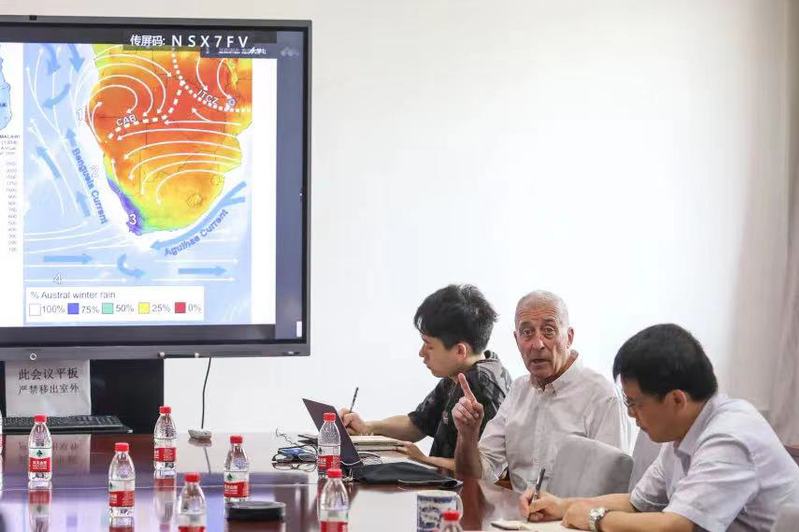 Michael Meadows院士详细介绍了他在气候和环境演变、可持续发展等领域所取得的一系列研究成果。Meadows院士利用沉积记录,重建了晚第四纪非洲南部地区的气候环境演变历史。近些年,他参与了中国学者在渭河盆地和宁绍平原等地开展的古气候研究工作。他还特别关注人类世和现代环境变化,参与了我国干旱区沙地面积变化、黑土区土壤侵蚀、城市绿地变化和填海造陆的环境效应等多项研究工作。与会师生与Meadows院士对南非最老的风成沉积、南非与北极全新世气候变化以及微生物在地理学研究中的应用等问题展开讨论,现场气氛热烈。Meadows院士表示,希望今后能够加强线上足球现金网 与海内外院校的合作交流,与现金网 师生一道继续在环境演变和可持续发展等领域开展特色创新研究,培养优秀的研究生和青年科技人才。