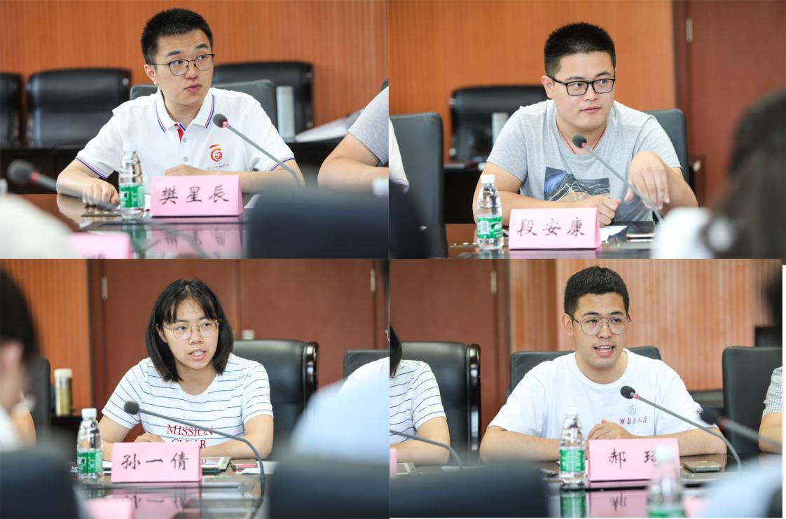 2018级地理科学专业本科生樊星辰、孙一倩,海洋科学专业本科生段安康、人文地理与城乡规划专业本科生郝琦分别围绕各自在南京大学四年的求学成长经历,表达了在未来新的学习阶段将时刻心系“国家事”,努力做到肩扛“国家责”,争取成为对祖国发展有用的人才。