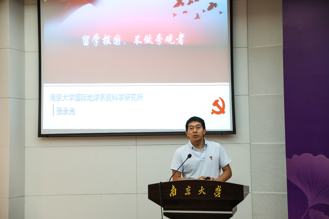 6月18日,校学习宣传习近平总书记重要回信精神专题宣讲团成员、南京大学国际地球系统科学研究所教授、国家级人才计划入选者张永光受邀面向全院毕业生做“留学报国,不做旁观者”主题报告,张永光教授结合自身留学经历,分享了他在德国留学时的所见所闻所感。作为南京大学给习总书记写信的120名留学归国青年学者之一,他表示,一名科技工作者不管身处哪里,都要有一颗矢志报国的心,绝不做旁观者。他勉励在场毕业生,作为南大学子,应该深刻理解总书记在回信中说的“推动科技自立自强”的深刻内涵,以创新科技发展为目标,贡献自己的一份力量。张永光教授的报告深入浅出,内容丰富,意义深刻,令人振奋。报告结束后,全体在场师生爆发出雷鸣般的掌声。