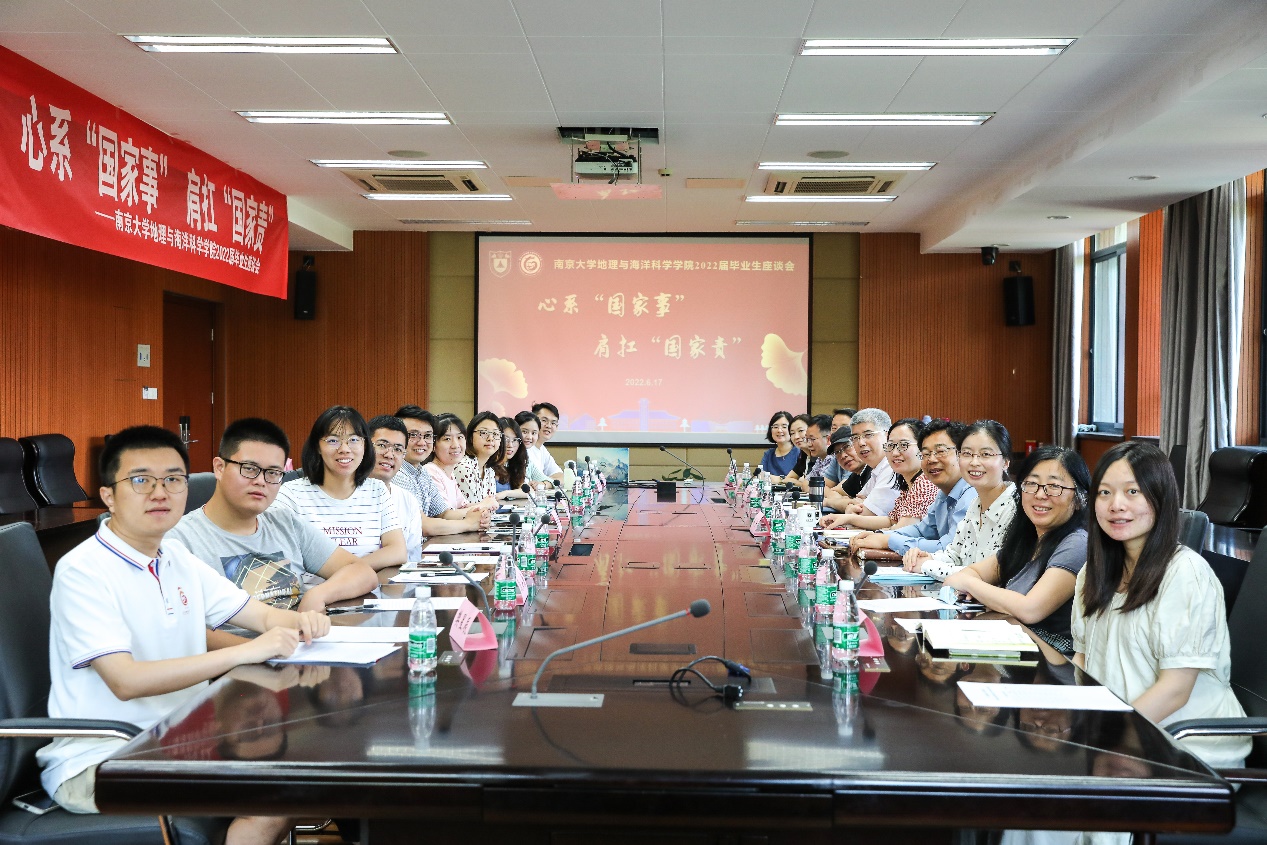 最后李满春书记做总结发言,他表示南京大学是国内顶尖的学府,其建设发展深受党和国家的重视,本次习近平总书记给南京大学留学归国青年学者的回信饱含了其对我国教育事业以及青年人才的关心,令人深受鼓舞!他勉励地海院毕业生要心系“国家事”,肩扛“国家责”,在青春的赛道上奋力奔跑,为祖国发展和人民幸福贡献智慧和力量。