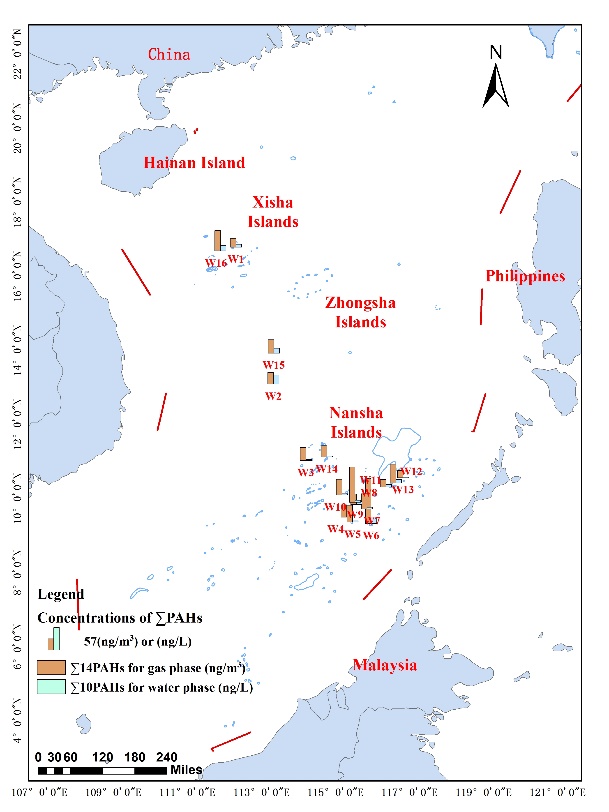 环芳烃(PAHs)是环境中广泛存在的、对生物体的健康会造成不良影响的典型持久性有机污染物(POPs)。同时其作为半挥发性有机污染物,主要来源于人类生产生活中的各类燃烧反应。海洋作为PAHs最重要的“汇”,其向海洋输送的途径主要有流域输入和大气沉降作用,而对于其在边缘海的环境行为随着人类活动的影响的加剧受到广泛关注。南海作为我国重要的边缘海以及生物多样性丰富的海区,其污染状态和污染物的溯源研究还较少。