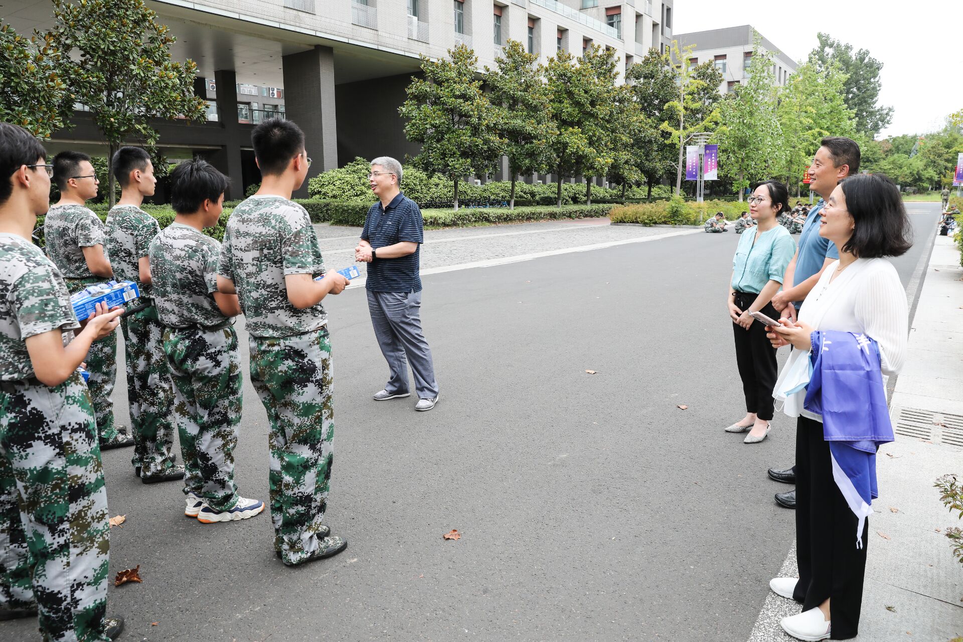 8月25日下午,天气凉爽、口号响亮,线上足球现金网 2021级本科生在训练场地上如火如荼地进行着军训。为了欢迎2021级同学,激励同学们继续保持高涨的军训热情,现金网 党委书记李满春、副书记陈卉、副院长金晓斌、辅导员李岩等一同前往军训场地走访慰问。